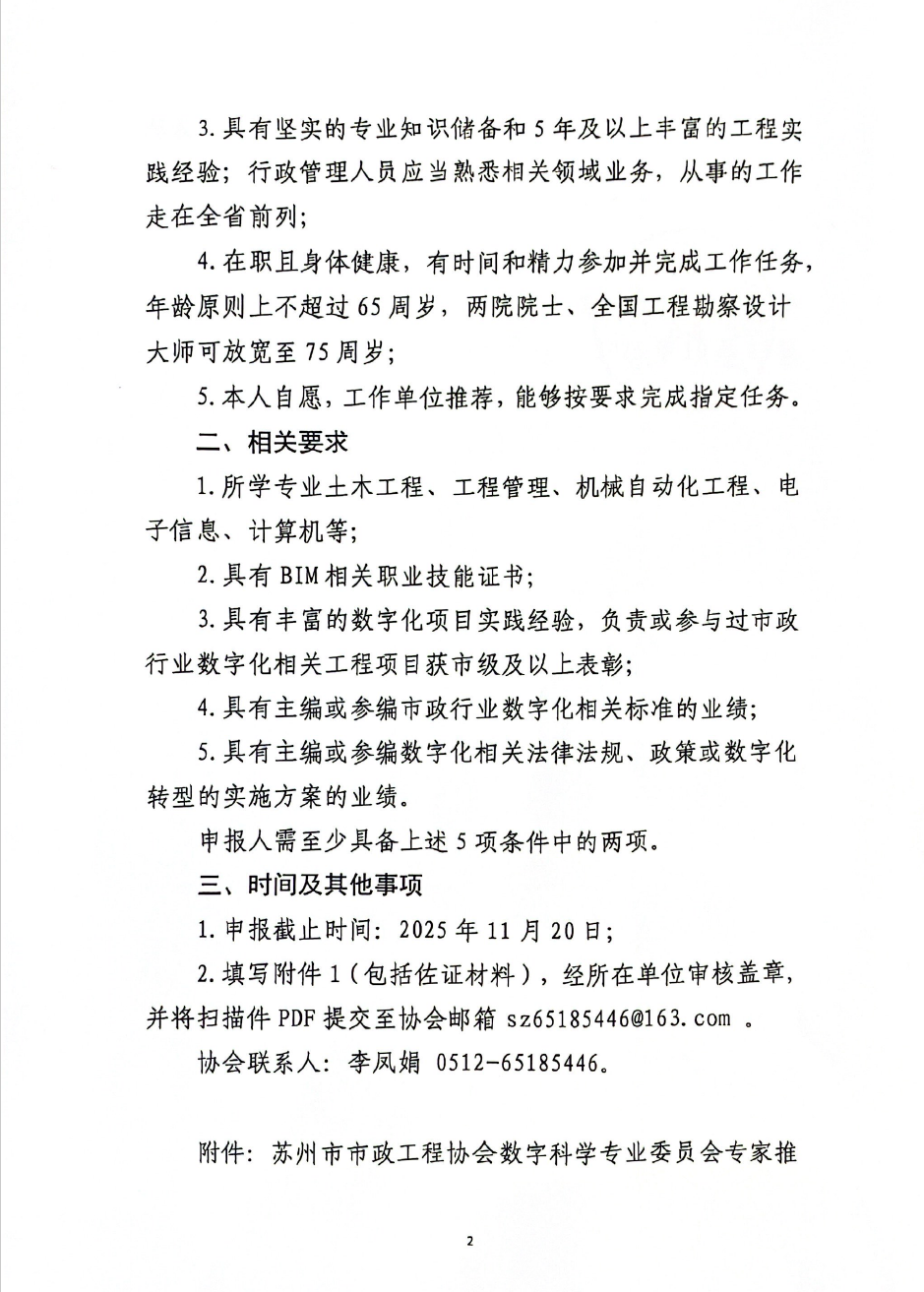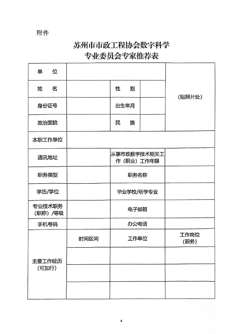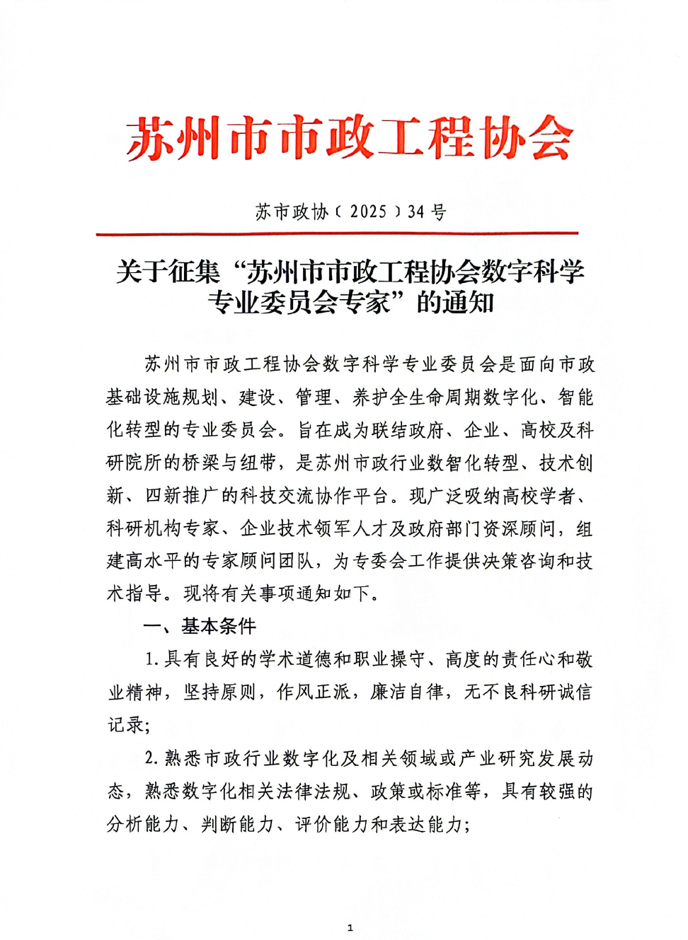 关于征集“苏州市市政工程协会数字科学专业委员会专家”的通知