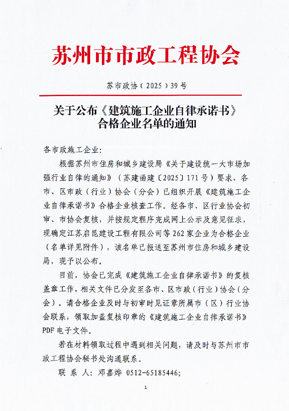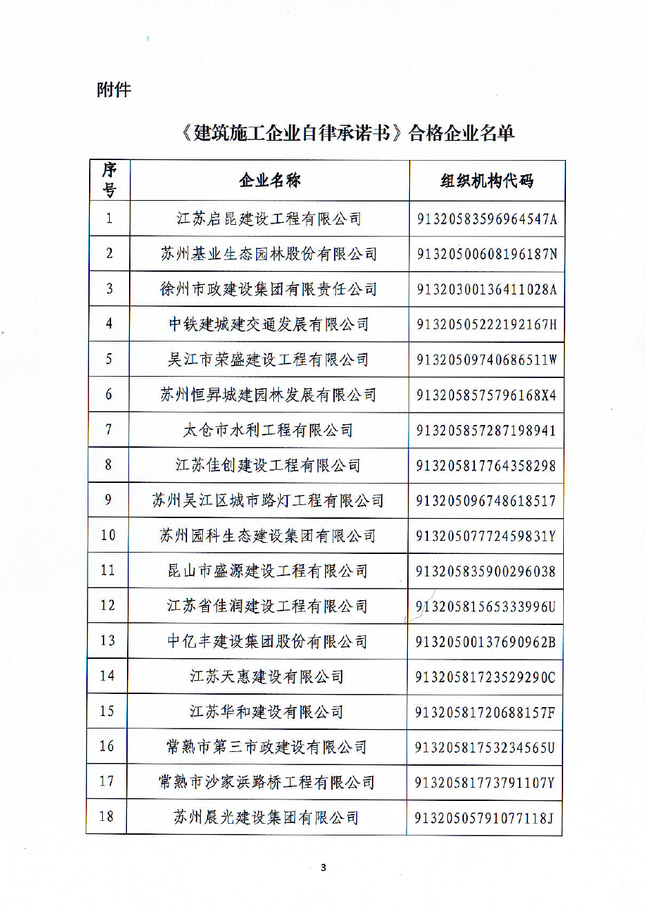 关于公布《建筑施工企业自律承诺书》合格企业名单的通知