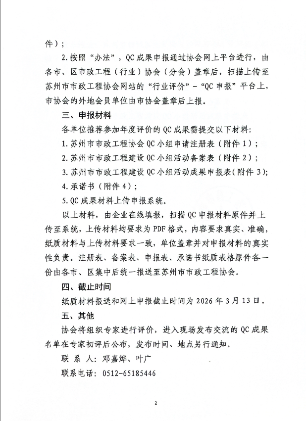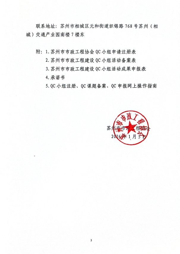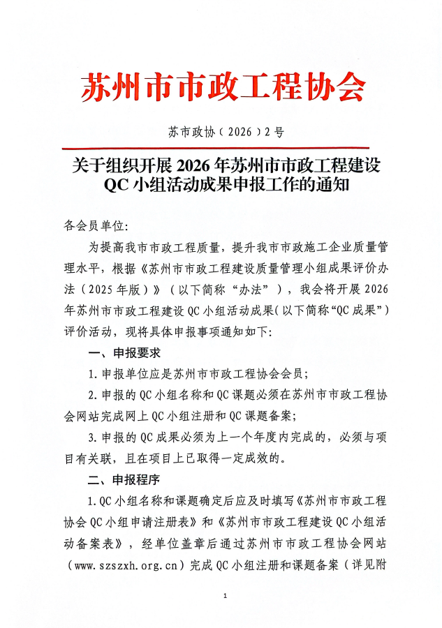 关于组织开展2026年苏州市市政工程建设QC小组活动成果申报工作的通知